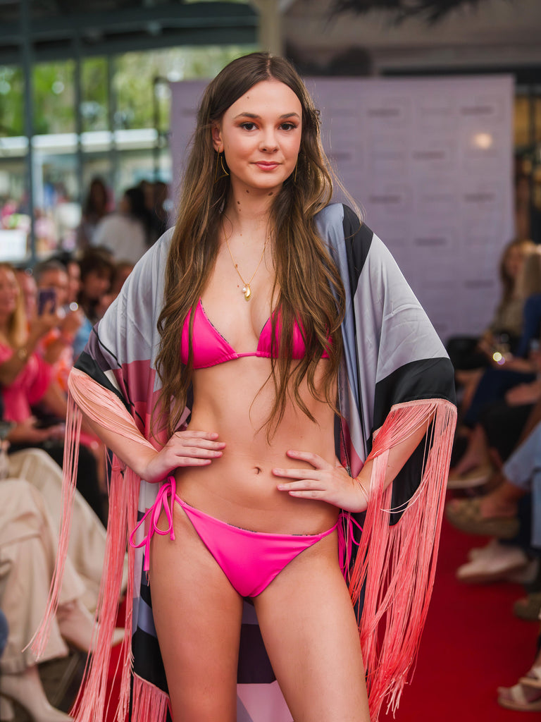 Palm Springs is a sun-soaked oasis all year round, renowned for its retro-chic charm, mid-century design, and chill atmosphere. Our gorgeous fringed Palm Springs kimono embodies this spirit with a mid-century black print in muted tones of dusty pink, silver grey, and blues, complemented by a dramatic show-stopping coral pink fringe.